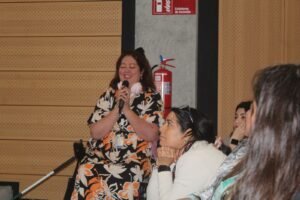 El cierre estuvo a cargo de la presidenta Stephanie Grimalt y de la socia Alejandra Vera, quienes compartieron reflexiones sobre liderazgo humanizado, sentido de vida y propósito, dejando un mensaje inspirador y transformador para todas y todos los presentes. La jornada concluyó con un gesto simbólico y lleno de esperanza al cantar juntos “Color Esperanza”, recordándonos la fuerza de la comunidad y el compromiso compartido por construir entornos más dignos y humanos.