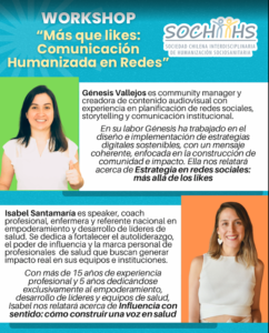 Este workshop busca reflexionar sobre el rol de la comunicación en la humanización de la atención en salud, promoviendo estrategias que vayan más allá de la visibilidad en redes sociales, favoreciendo la construcción de comunidad, el liderazgo sanitario y el cuidado centrado en las personas.
